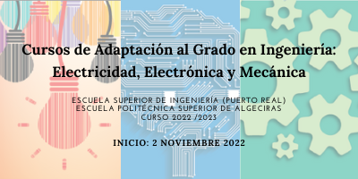 Nuevos cursos online de adaptación a los grados de Ingeniería Electrónica Industrial, Ingeniería Mecánica e Ingeniería Eléctrica (2022-2023). Ya puedes solicitar tu plaza para los cursos online de Adaptación al Grado del 2022/2023. El plazo estará abierto desde el 5 de julio hasta el 14 de septiembre, y se realiza a través de la web del Distrito Único Andaluz (Itinerarios […]