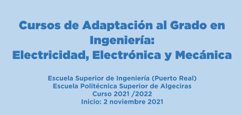 Nuevos cursos online de adaptación a los grados de Ingeniería Electrónica Industrial, Ingeniería Mecánica e Ingeniería Eléctrica (2021-2022). Ya puedes solicitar tu plaza para los cursos online de Adaptación al Grado del 2021/2022. El plazo estará abierto desde el 15 de junio hasta el 8 de septiembre, y se realiza a través de la web del Distrito Único Andaluz (Itinerarios […]