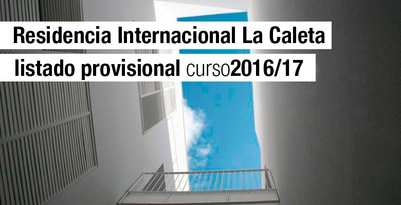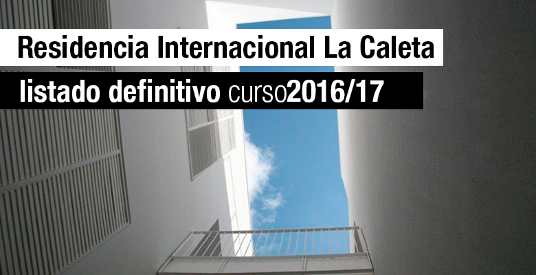 Listado definitivo de adjudicación de plazas de la Residencia Internacional “La Caleta” 2016‐2017 Ya puede consultarse el listado definitivo de adjudicación de plazas de la Residencia Internacional “La Caleta” para el curso 2016/17 pinchando aquí. Se comunicará por mail los pasos a seguir para formalizar la reserva.